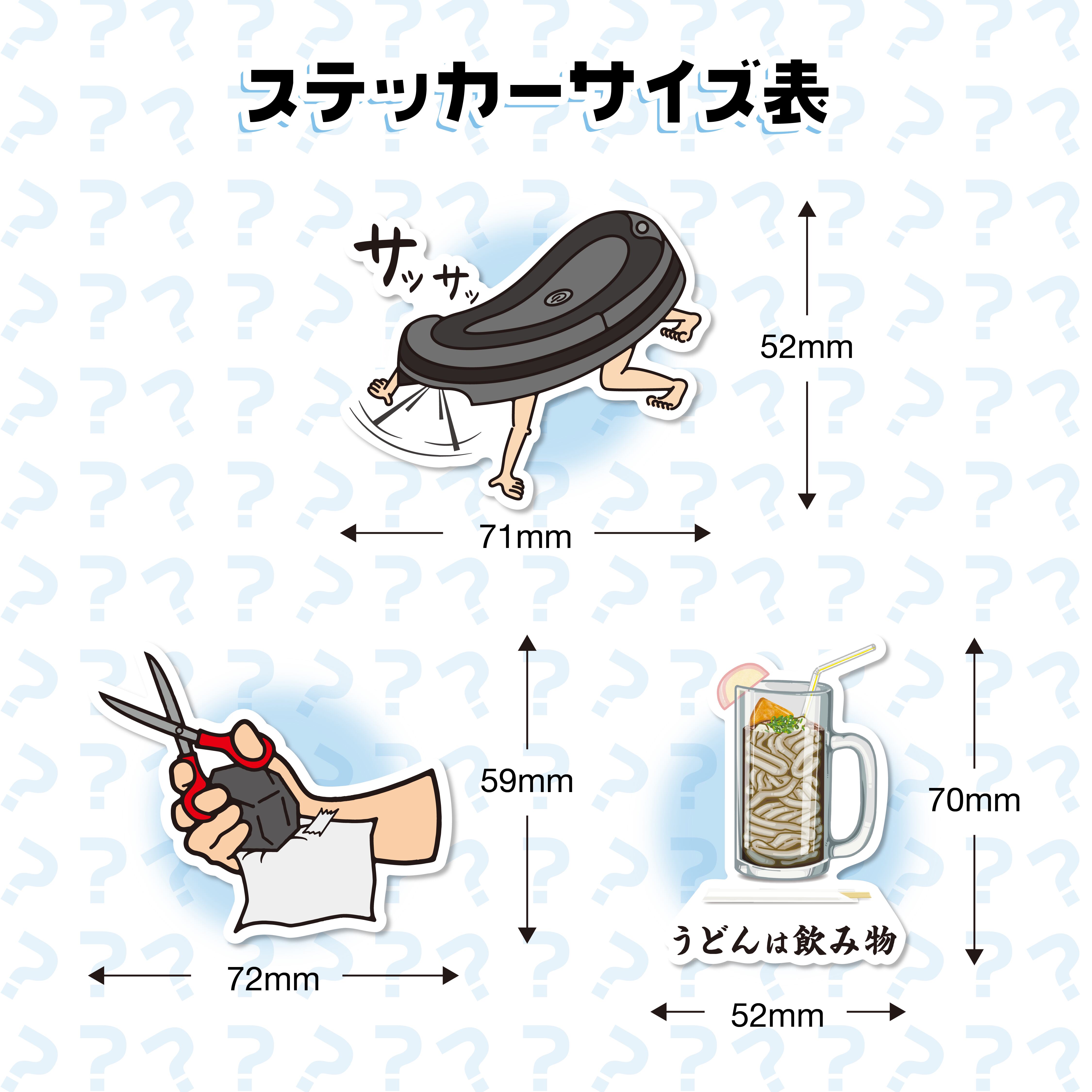 うどんは飲み物ステッカー : 幅52mm 高さ70mm